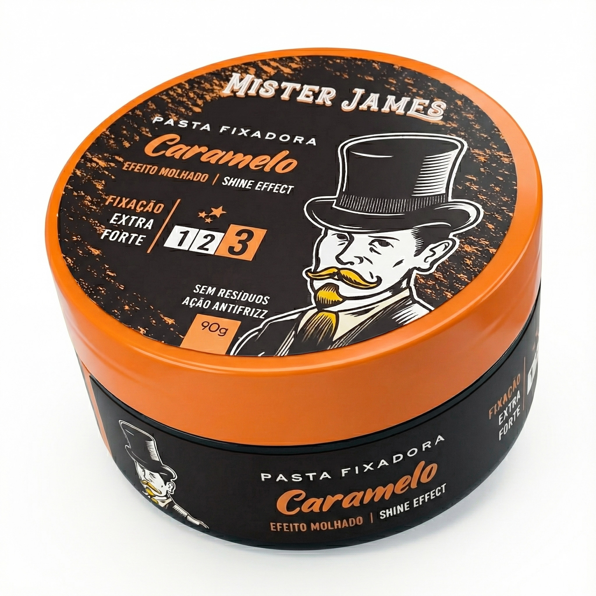 A pomada Mister James® Caramelo possui fixação forte e brilho médio. Ideal para penteados casuais e estilosos. Seu uso também é indicado para manter cachos e ondas bem arrumados em sem frizz durante horas.